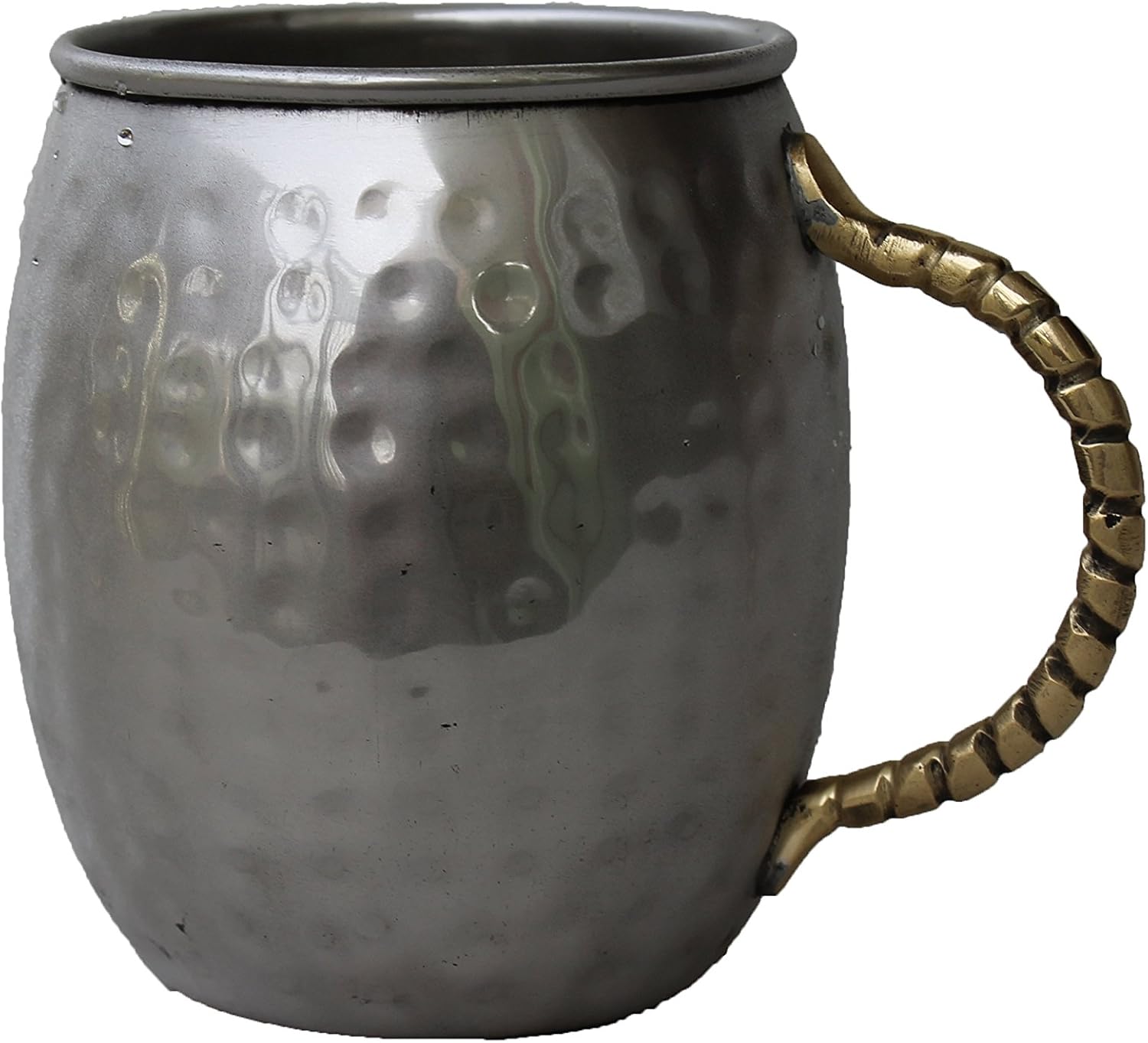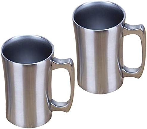 Stainless steel insulated beer mug.