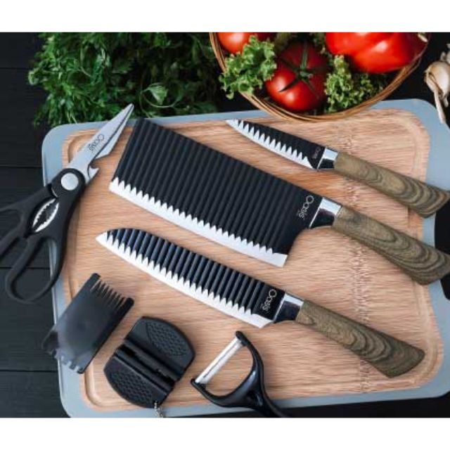 Idrop idrop combo set of 6 titanium coated stainless steel kitchen knife set cutter tools.