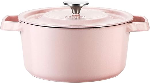 Cooker King Dutch Oven Enameled Cast Iron Stovetop Casserole Cookware Braising Pot White Inner Porcelain Enamel Coated Cast Iron Baking Pots With Lid Classic Enamel Casserole Pot Handles Pink Actually 3 8 Quart Amazon Ca