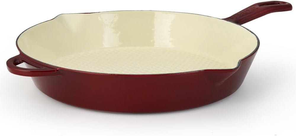 Essenso Enameled Cast Iron Skillet Frying Saute Fry Pan Enamel Ceramic Coated 11 Dark Red Cherry Cream Induction And Glass Stove Compatible Amazon Ca Home Kitchen