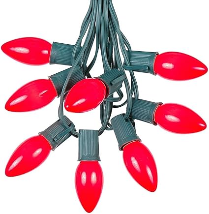 Amazon Com 25 Foot C9 Red Ceramic Christmas String Light Set Outdoor Christmas Light String Christmas Tree Lights Opaque Christmas Bulbs Roofline Light String Outdoor String Lights Green Wire Garden Outdoor