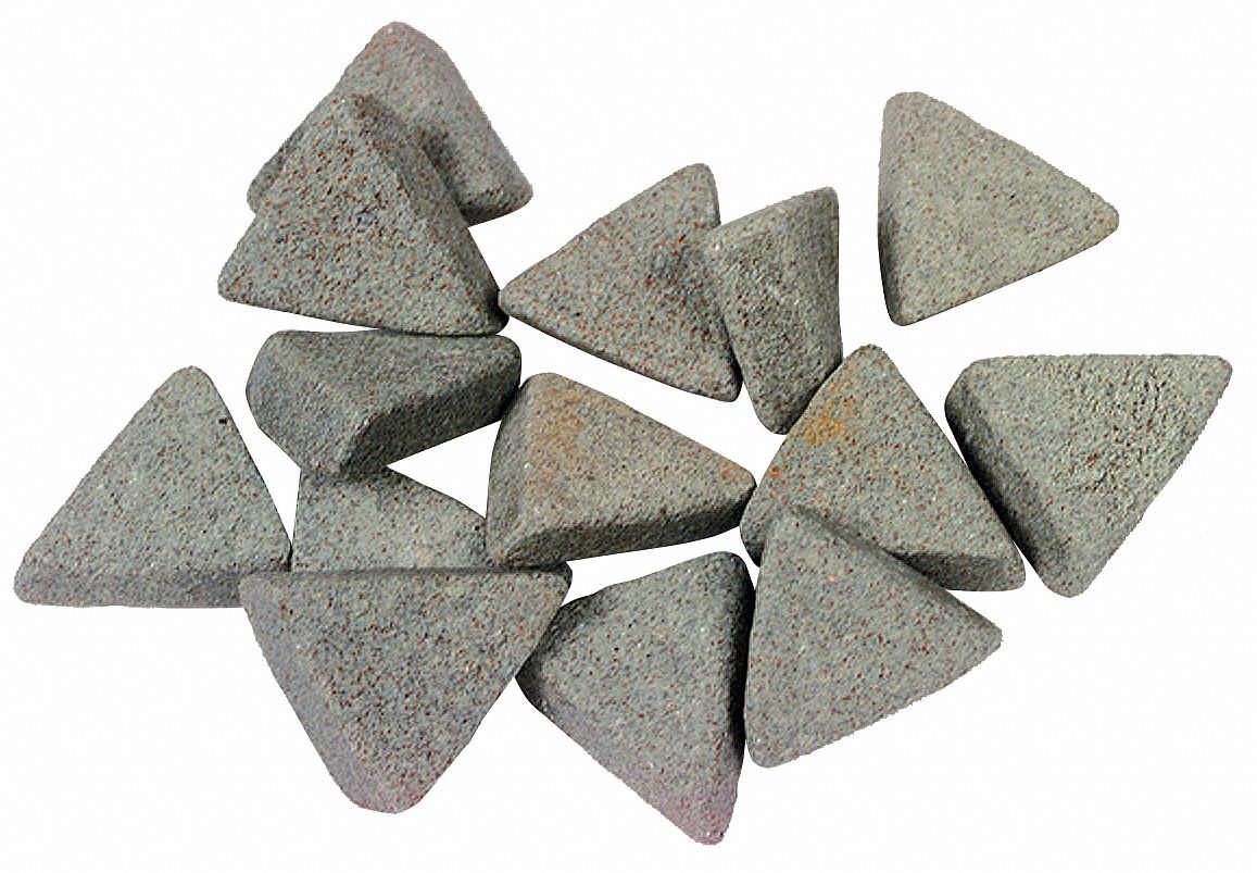 X 7 8 in density 90 lb cu ft weight 20 lb for use with vibratory tumbler heaviest media and fastest finisher for rapid deburring and can also be used for polishing bonded with aluminum oxide.