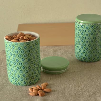 Buy Stylemyway Green Multi Utility Kitchen Storage Airtight Ceramic Jar Set Set Of 2 Airtight Ceramic Kitchen Canister Snack Jar Cookie Jar With Airtight Lid For Food Storage