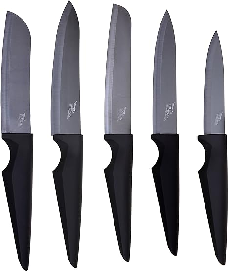 The black diamond knife block has space for up to eleven knives though so my initial four were looking a tiny bit sparse so i was thrilled when this lovely brand sent me their 5 piece ceramic onyx knife collection priced at 299 90 to help fill up my block.