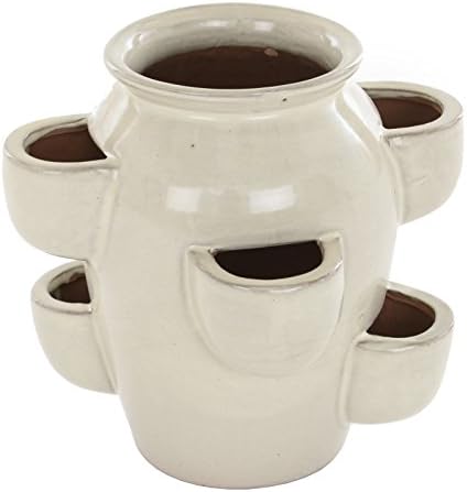 Multi Use Glazed Clay Terracotta Garden Herb Planter Strawberry Pot 25cm Tall Cream Amazon Co Uk Kitchen Home