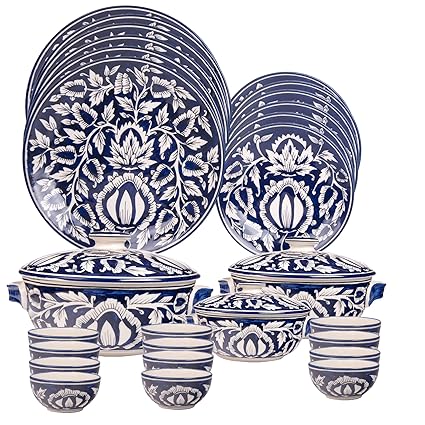 Buy Craftghar Stoneware Ceramic Microwave And Food Safe Dinnerware Sets Blue Pottery Hand Painted 27 Pieces Online At Low Prices In India Amazon In
