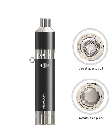 Beast of a wax tank with triple quartz power plant ceramic bowl additional ceramic donut wax heater high heat resistant additional mouthpiece stainless steel and glass body ultra strong magnet for quick fills and easy cleaning monster rips and flavor to match 510 thread works with mod batteries operating range 13 38 watts.